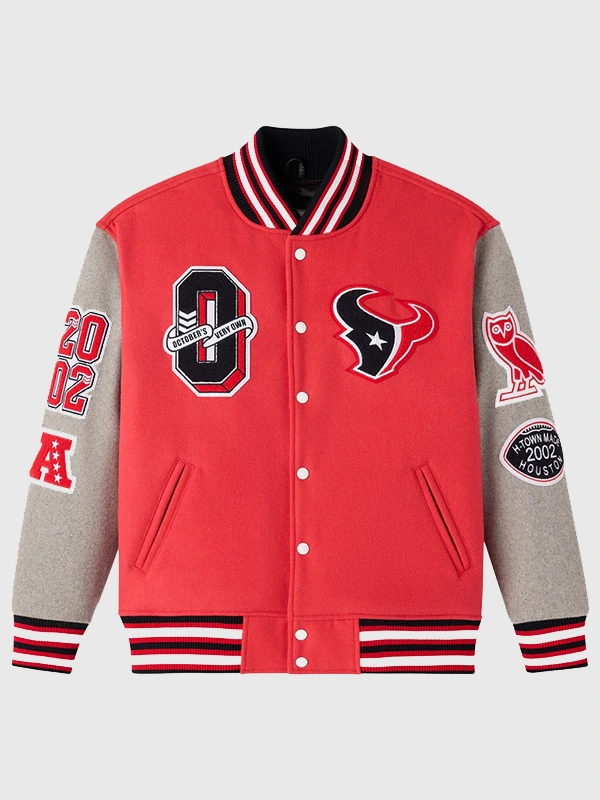 The OVO 2025 Houston Texans Varsity Jacket is a flagship piece from the exclusive collaboration between the Houston Texans and Drake’s global lifestyle brand, October’s Very Own (OVO). This limited-edition jacket merges the hard-hitting spirit of Texas football with OVO’s signature minimalist luxury, resulting in a premium collectible that stands at the intersection of sports and high-fashion streetwear.