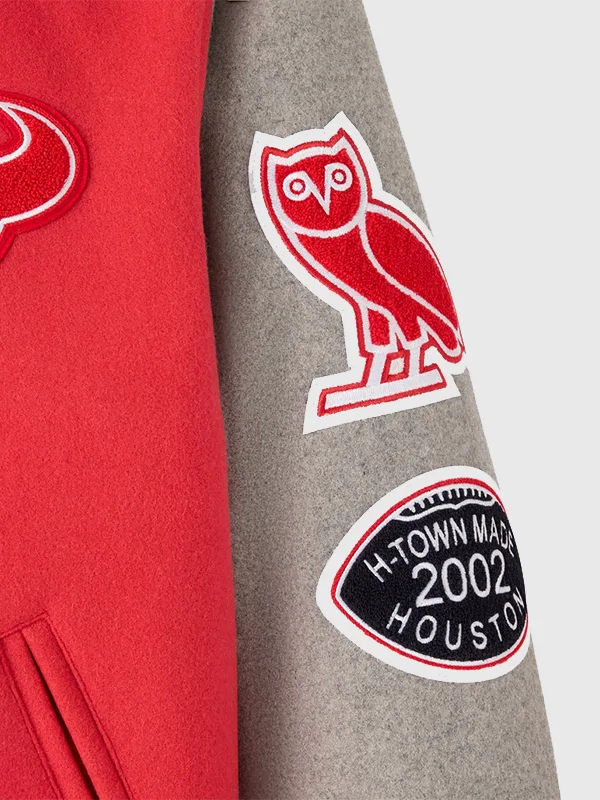 2025 Houston Texans OVO Wool Varsity Jacket in Red & Grey