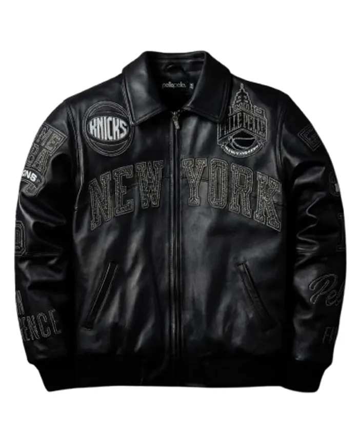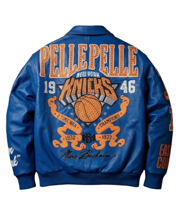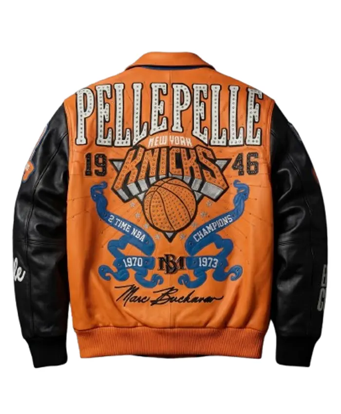 Multi-Layered Chenille Patches: The back features a massive, 3D-embroidered “New York All-Star” crest, incorporating the iconic NYC skyline, a flaming basketball, and classic Pelle Pelle branding.