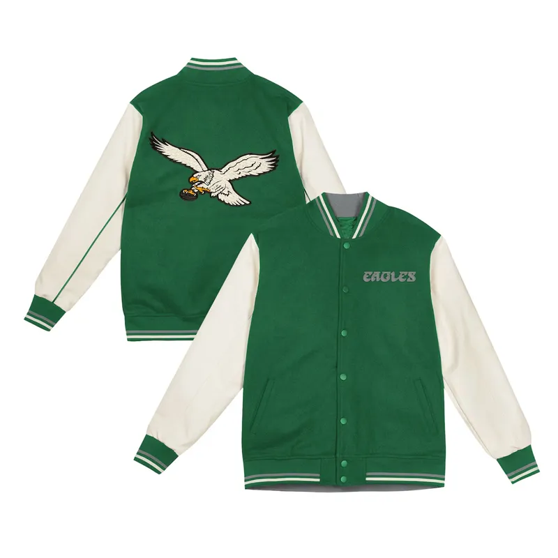 Philadelphia Eagles Green and Cream Wool/Leather Varsity Jacket