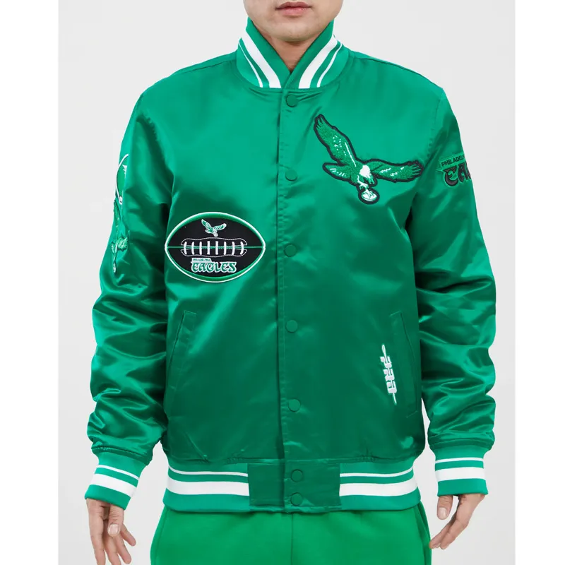 Philadelphia Eagles Old English Classic Rib Satin Jacket – Kelly Green