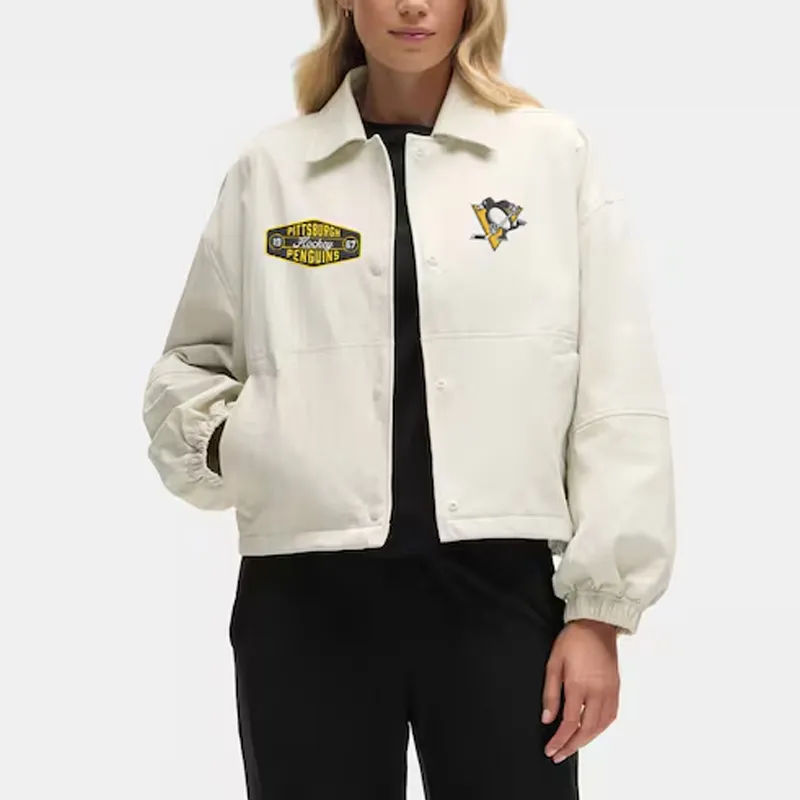 • Command the attention of the arena with the NHL Pittsburgh Penguins Coach’s Heathered Bone Jacket. Moving beyond the traditional black and gold, this jacket introduces a sophisticated “Bone” heathered palette that offers a neutral, high-end look. It is designed for those who appreciate a professional sideline aesthetic that transitions seamlessly from the glass to the city.