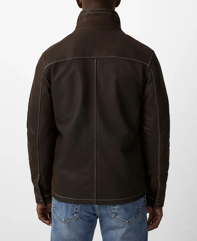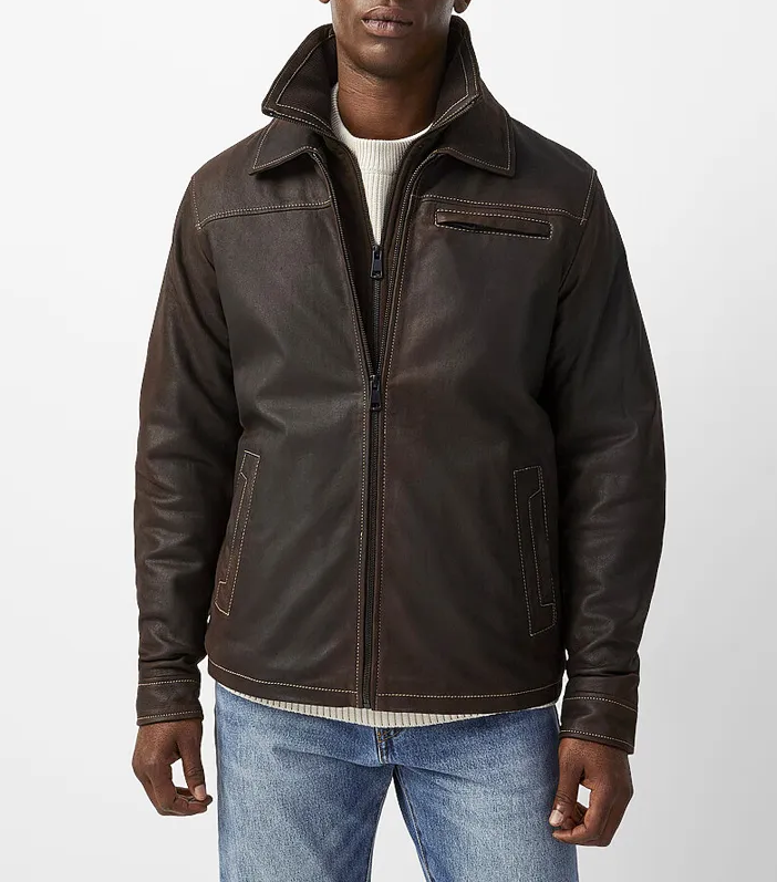 Made from premium-quality leather, it features a structured silhouette that offers durability while maintaining comfort. The design includes a front zip closure, stand-up collar, and functional pockets for a versatile, everyday look. Its rich finish and tailored cut make it the perfect outerwear piece to pair with jeans, boots, or layered over casual ensembles.
