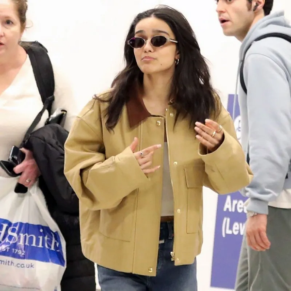 Capture Rachel Zegler’s effortlessly cool airport style with the Brown Cotton Jacket she was spotted wearing at LAX. This piece blends travel-ready comfort with understated sophistication, making it a versatile outer layer for casual looks year-round.