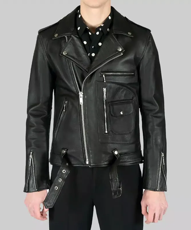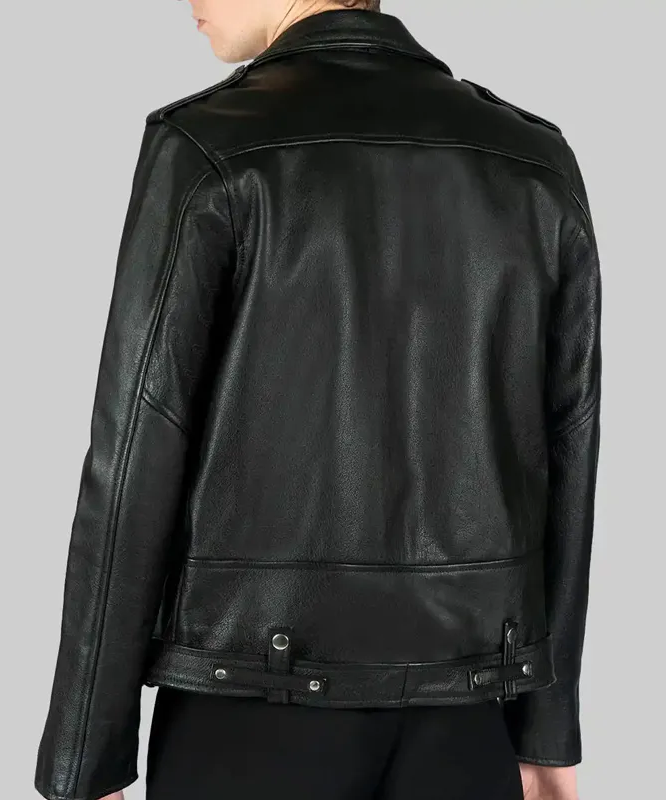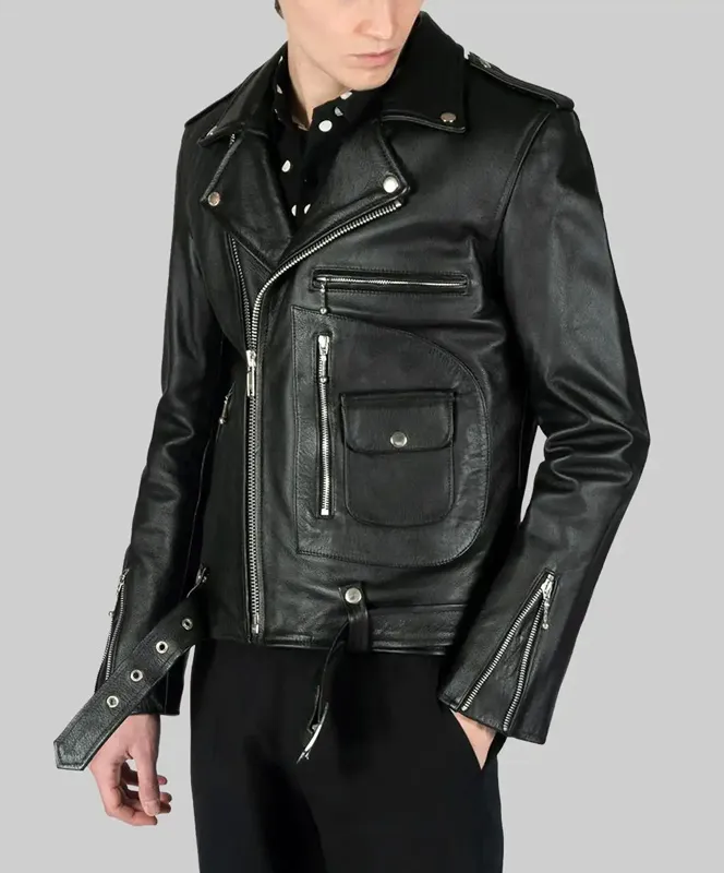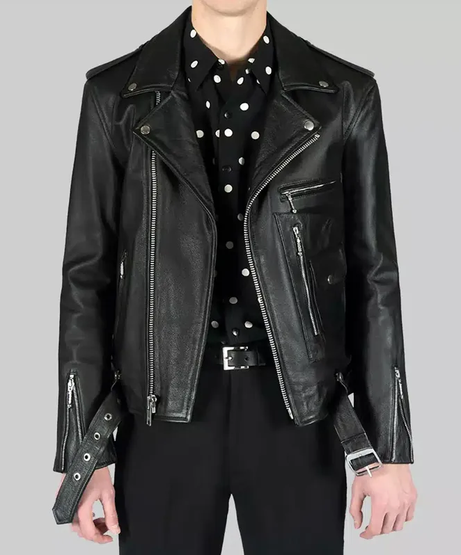 • Premium black leather with a classic biker silhouette