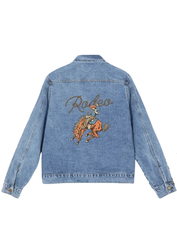 Rodeo Las Vegas Bucking Horse Western Blue Denim Jacket