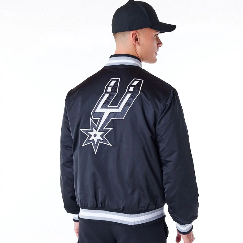 Show your Spurs pride in timeless style with the San Antonio Spurs NBA Satin Black Bomber Jacket. Designed with a sleek satin finish and bold team embroidery, this officially licensed NBA jacket features a snap-button front, striped ribbed cuffs, and classic varsity vibes. Whether you’re courtside or street-side, this jacket delivers the perfect mix of comfort, style, and team spirit.
