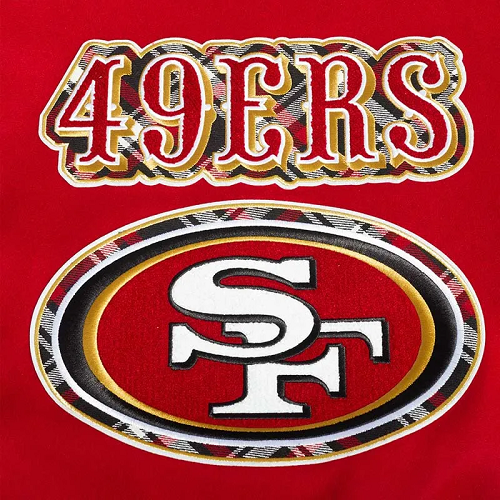Showcase your Niners loyalty with standout style in the San Francisco 49ers Prep Varsity Jacket in bold red and black. This classic varsity design brings iconic football heritage and San Francisco pride into your everyday wardrobe.