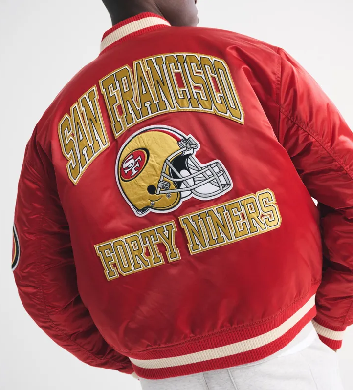 Designed for both comfort and durability, it features a soft quilted lining, full-snap button front, and rib-knit collar, cuffs, and hem for that classic varsity fit. Whether you’re at Levi’s Stadium, watching from home, or out on the town, this jacket delivers game-day energy and timeless style.