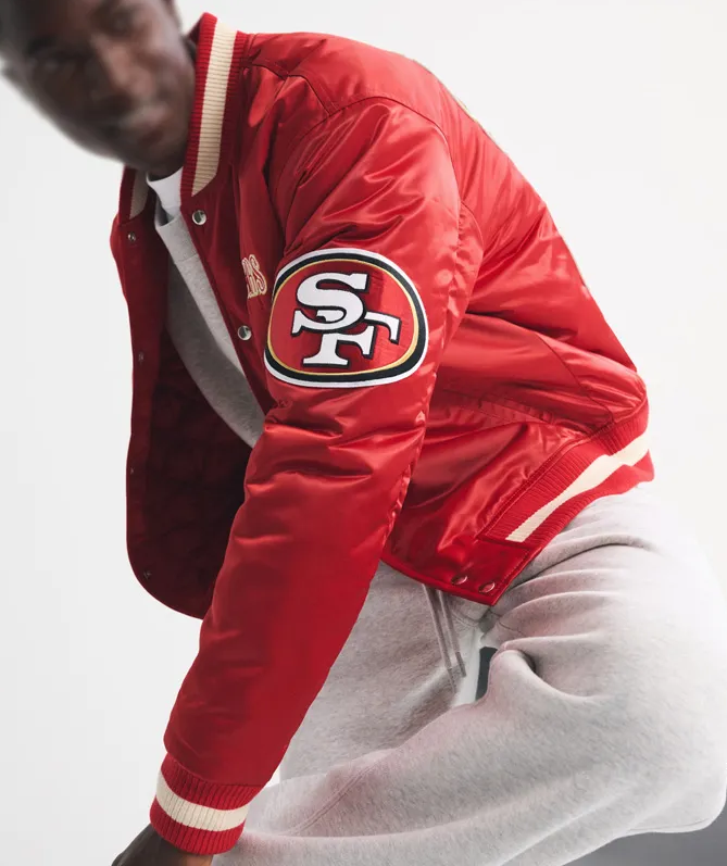 San Francisco 49ers Varsity Bomber Red Satin Jacket