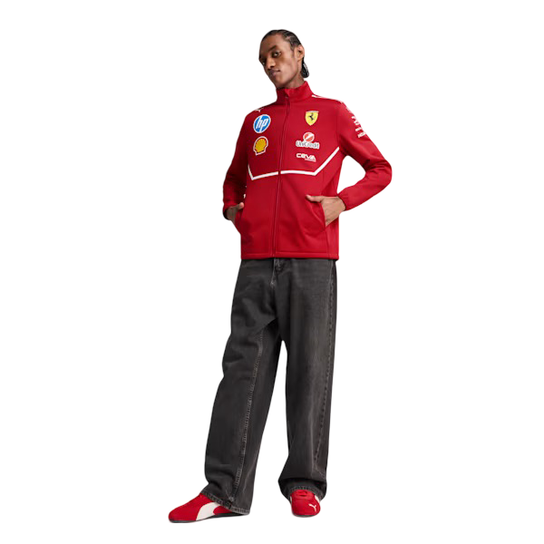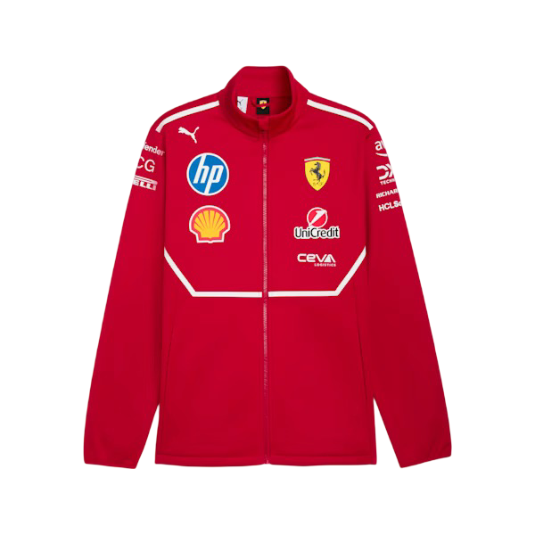 Show your allegiance to the pinnacle of motorsport with the Scuderia Ferrari 2025 Team Softshell Jacket. Engineered for performance and designed with Ferrari’s unmistakable style, this jacket features a sleek, aerodynamic fit and premium weather-resistant fabric. Official 2025 team branding and sponsor logos add authentic racing flair, while the full-zip front and stand-up collar provide comfort and functionality. Whether you’re at the track or on the street, this jacket lets you channel the spirit of Scuderia Ferrari with every wear. A must-have for true Tifosi and F1 fans alike.
