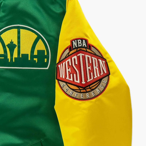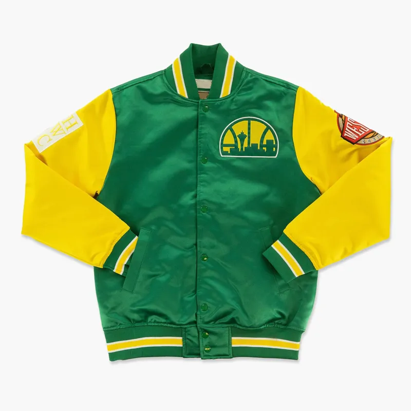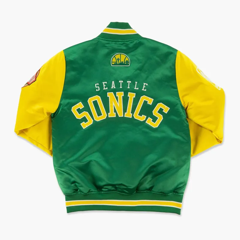 Celebrate the vibrant legacy of Seattle basketball with the Seattle SuperSonics Primetime Green and Gold Satin Jacket, a timeless piece that fuses retro NBA style with modern streetwear flair. Perfect for fans and collectors, this jacket captures the energy and nostalgia of the iconic SuperSonics era.