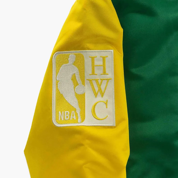 Crafted from premium satin in the team’s signature green and gold colorway, it features a full-snap front closure, rib-knit collar, cuffs, and hem for a secure varsity-inspired fit. Authentic SuperSonics graphics and patches highlight the team’s rich history, while the soft inner lining offers comfort for all-day wear. Lightweight and eye-catching, it’s perfect for layering at games or making a bold style statement.