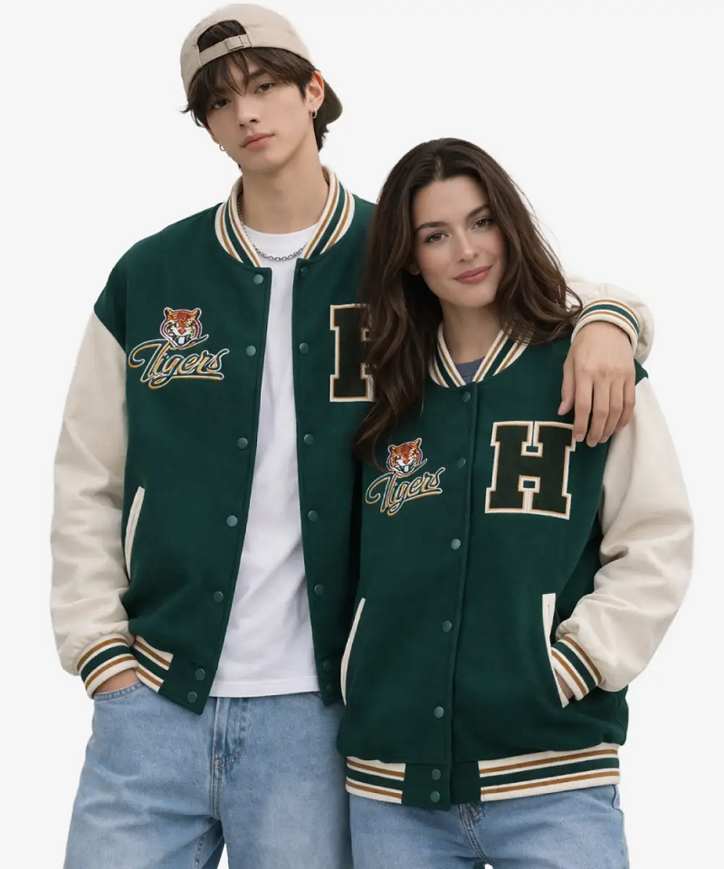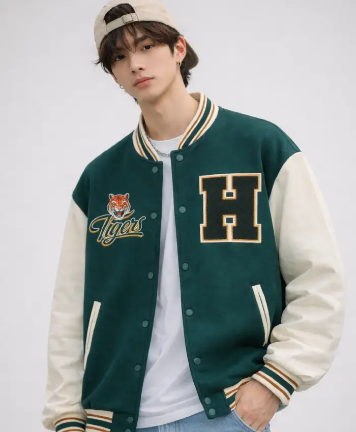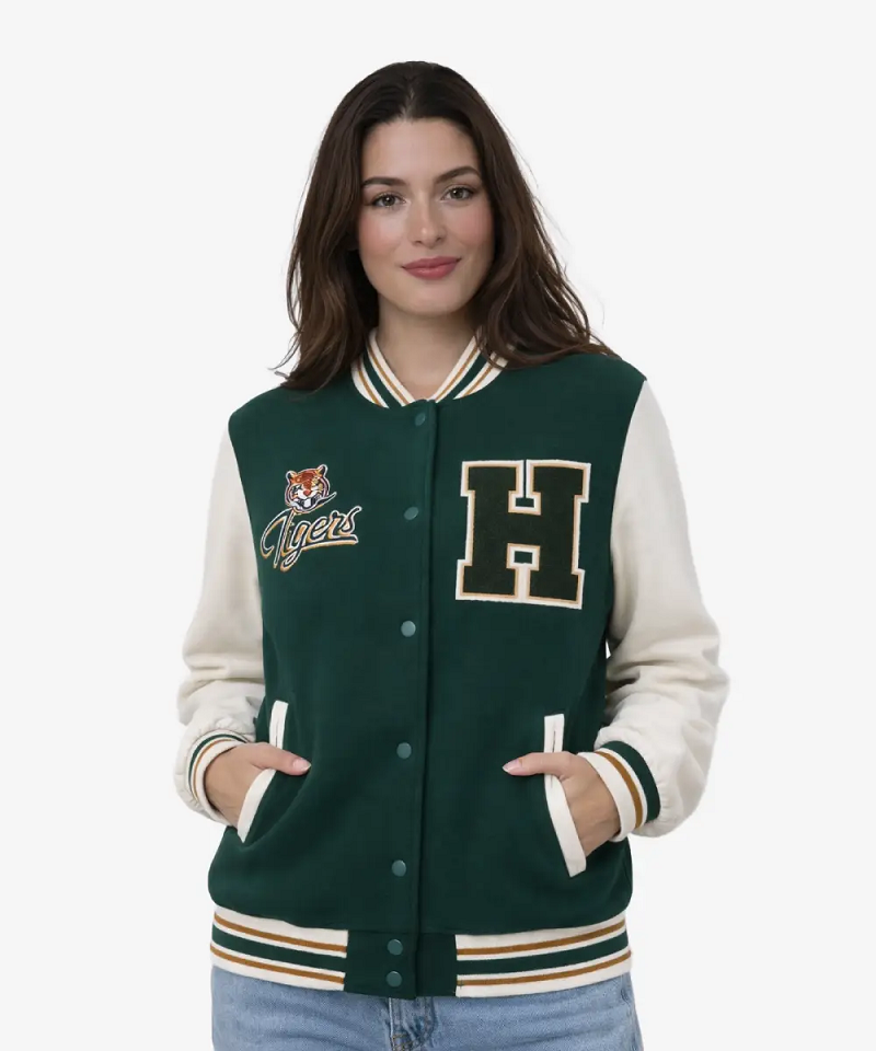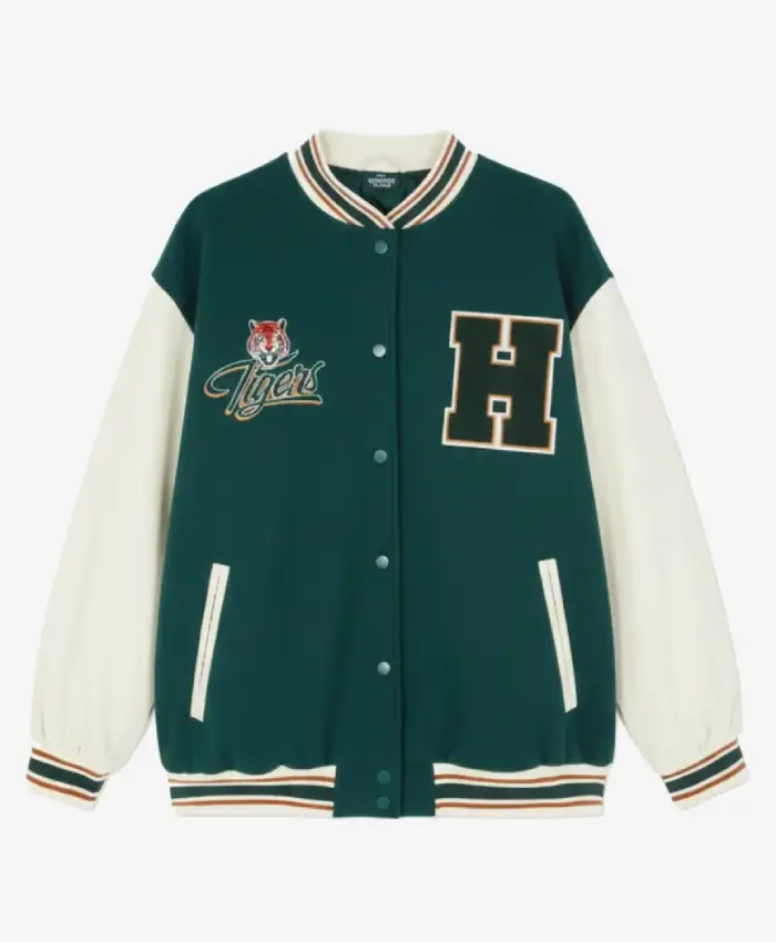 • Step back into the 1980s and show your school spirit with the Stranger Things Hawkins Tigers Green Bomber Varsity Jacket, an authentic recreation of the classic athletic wear seen in the halls of Hawkins High. This 2026 edition is meticulously crafted from a premium wool-blend body and features high-quality faux leather sleeves, capturing the iconic “Hawkins Green” and gold colorway that defines the series’ nostalgic aesthetic.