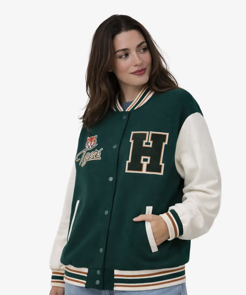 Stranger Things Hawkin Tiger Green Bomber Varsity Jacket