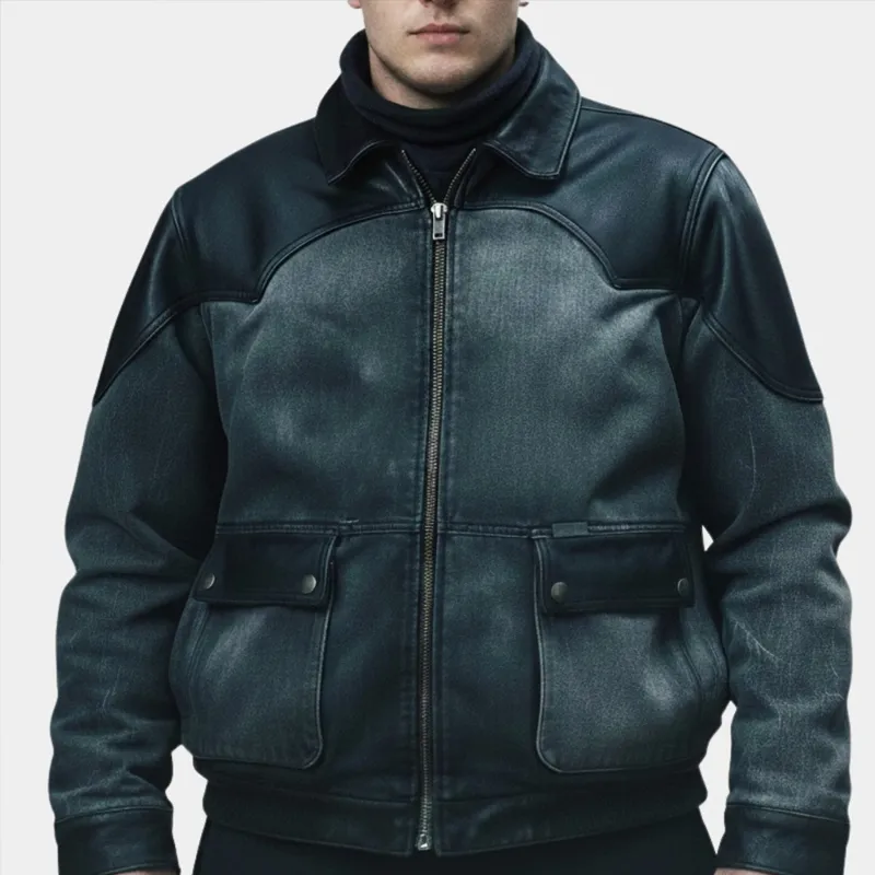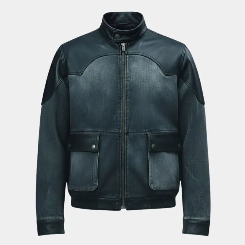 David Harbour Stranger Things S05 Jim Hopper Denim and Leather Gray Jacket
