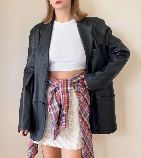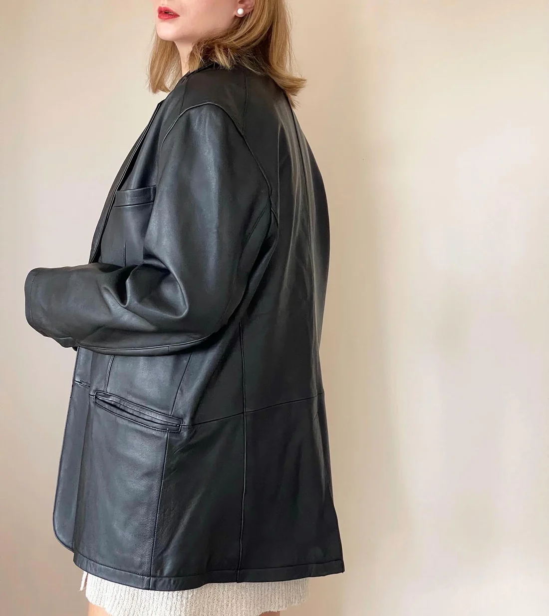 Stunning Vintage Oversized Black Leather Jacket