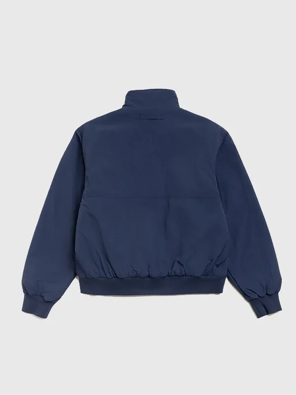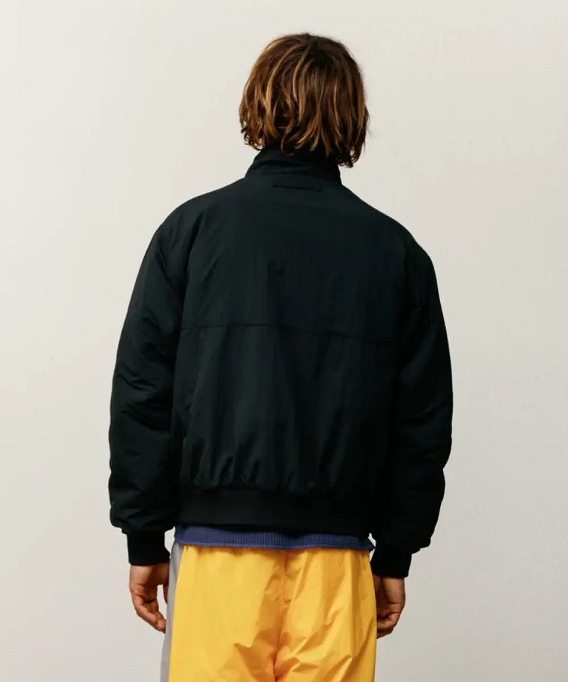 “Tough-Shell” Nylon Exterior: Crafted from a premium, high-density nylon Taslan shell that is wind-resistant and water-repellent. It features a matte, “crinkle” texture for that authentic vintage streetwear aesthetic.