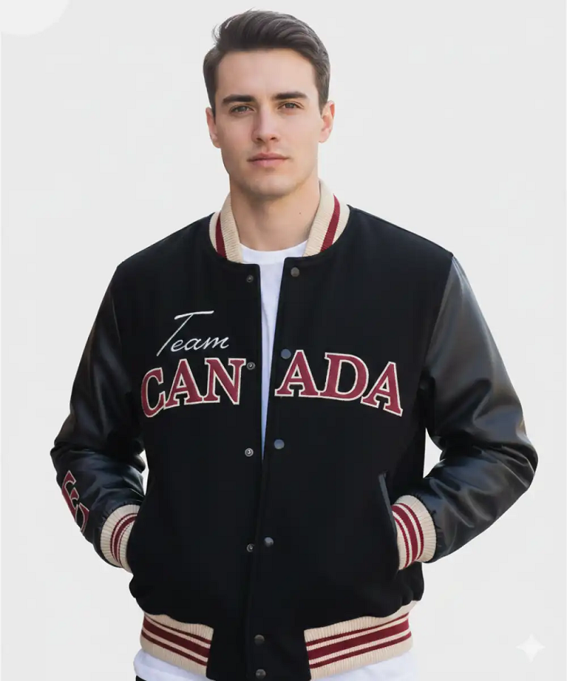 Represent the Great White North with the Team Canada Varsity Bomber Jacket. Designed for the ultimate patriot and the global sports fan, this jacket blends the classic “Golden Age” varsity silhouette with modern Canadian pride. Whether you’re cheering from the ice-side seats, supporting the national team on the world stage, or simply navigating a crisp Canadian autumn, this jacket is the definitive symbol of national excellence.