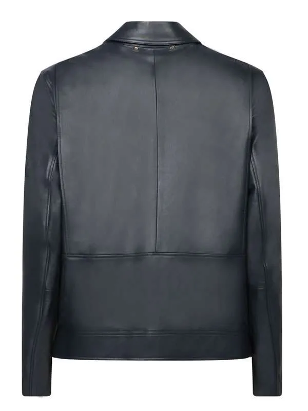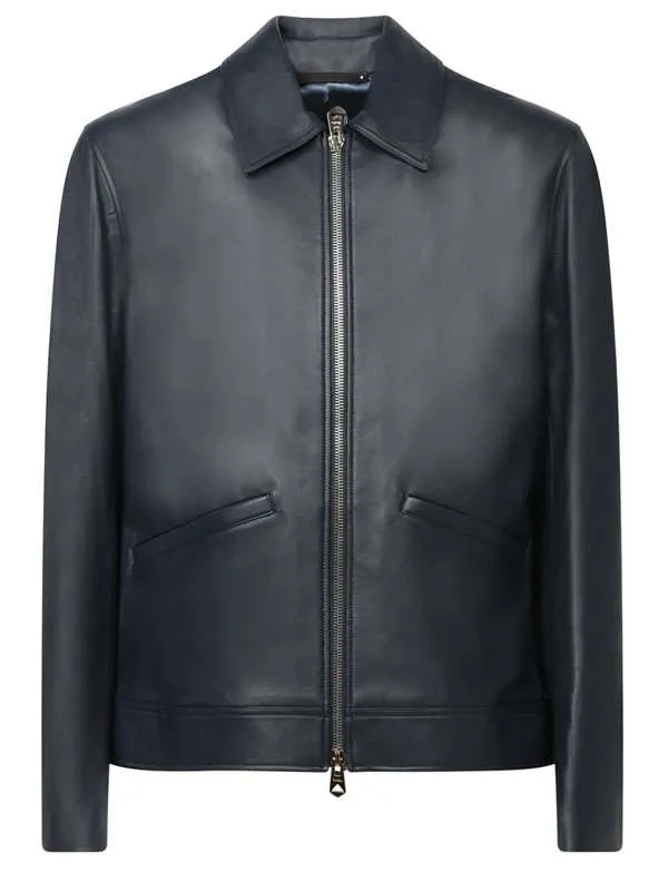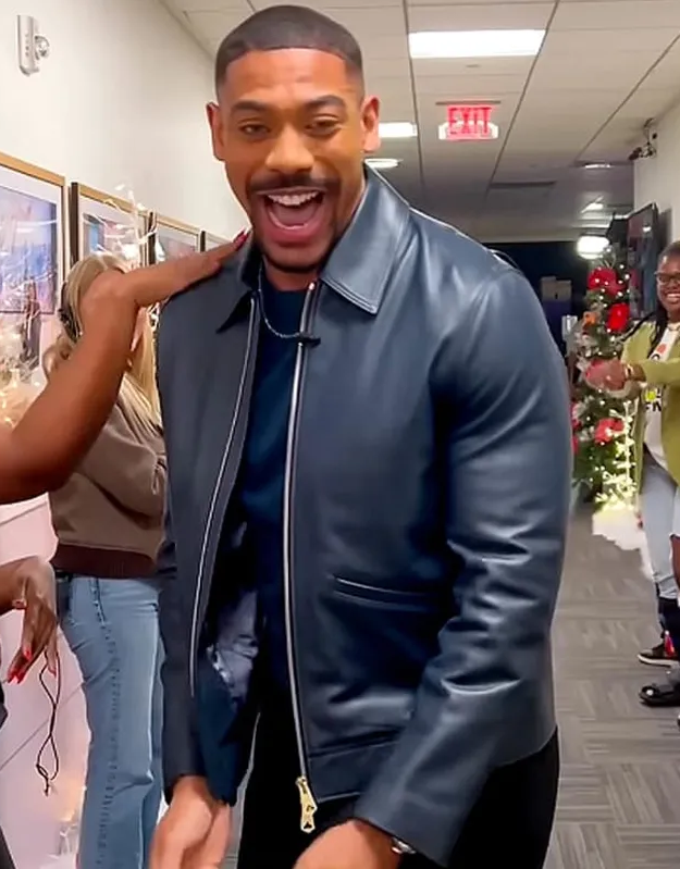 The Jennifer Hudson Show Aaron Pierre Full-Zip Leather Navy Jacket