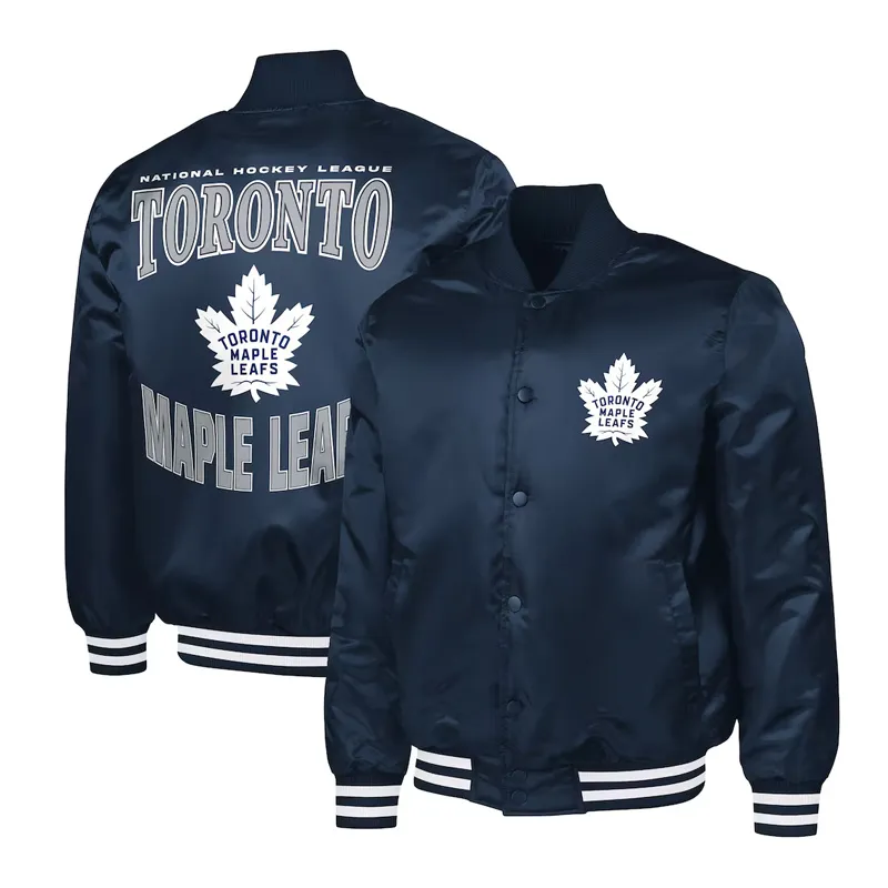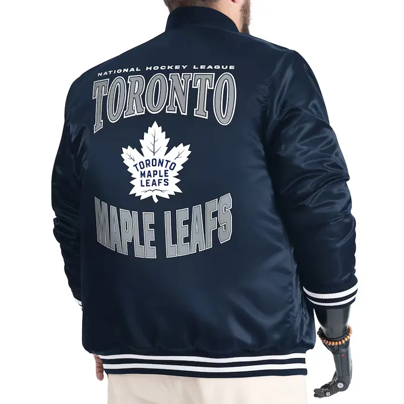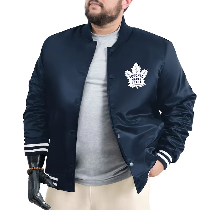 Toronto Maple Adaptive Bold Logo Navy Varsity Satin Jacket