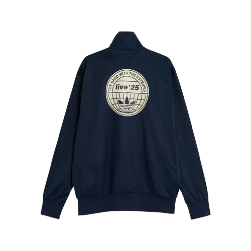 Made from smooth, lightweight tricot fabric, it offers a sleek feel and comfortable fit that moves with you. Signature contrast stripes run boldly down the sleeves, paying homage to vintage track tops, while the striking blue color adds a pop of energy to your look.