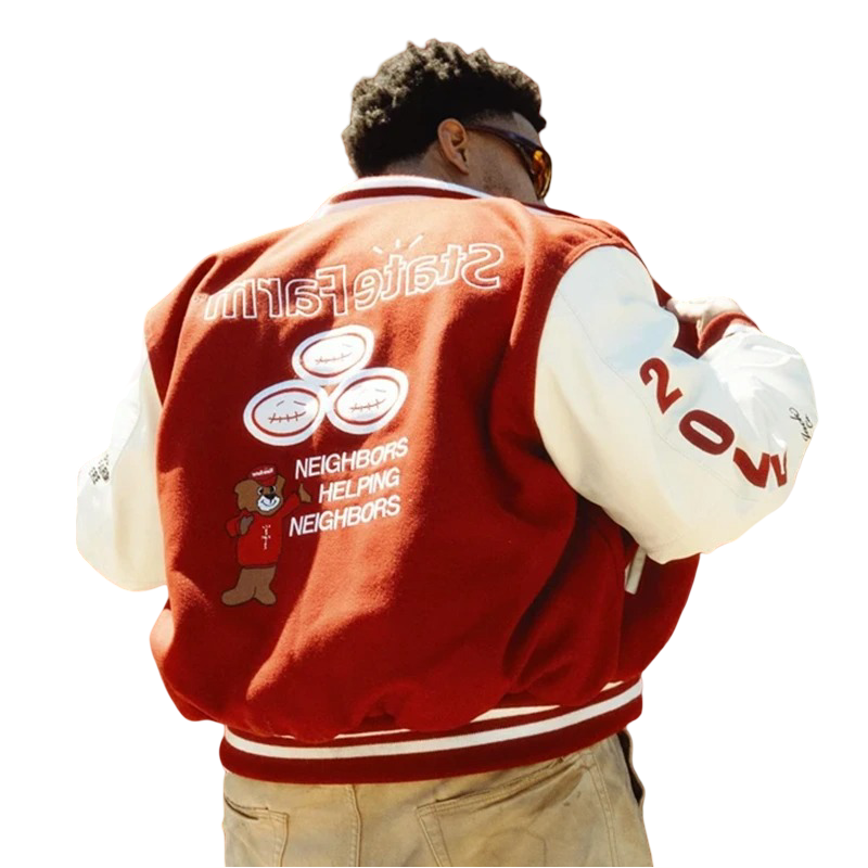 Where streetwear meets unexpected collab culture — the Travis Scott Cactus Jack x State Farm Jacket is a limited-edition piece that breaks all the rules. Born from the wild synergy between Travis Scott’s Cactus Jack brand and State Farm, this jacket delivers hype-worthy style with a playful nod to corporate cool. Made with premium materials, the jacket features bold co-branded logos, unique graphic details, and a clean silhouette that’s equal parts fashion and irony.