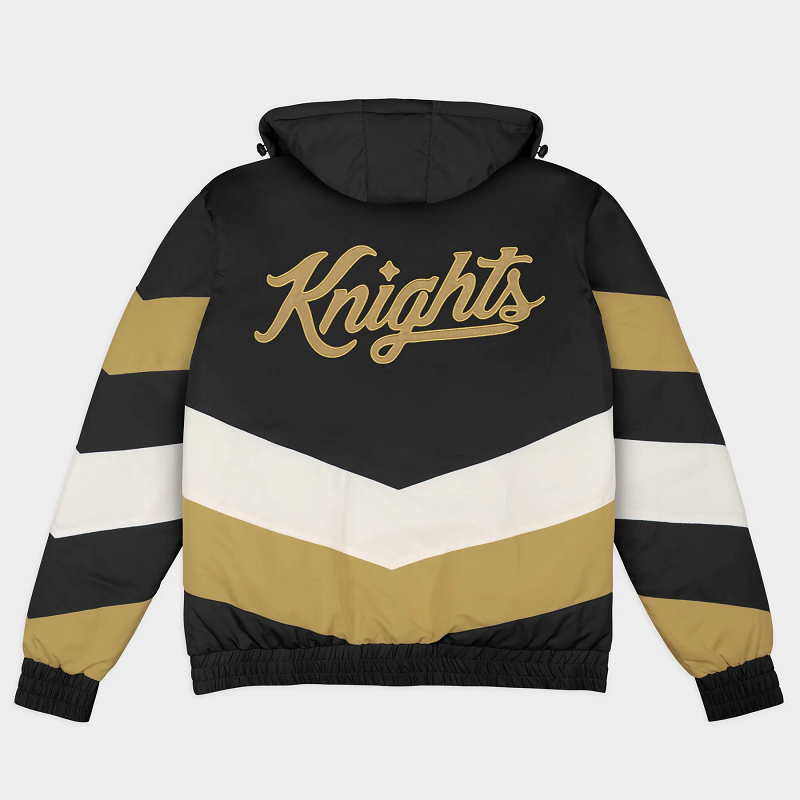 Crafted from premium materials, it features a sleek black body with gold and white accents, perfectly representing the Knights’ iconic colors. Embroidered UCF logos and Gamebreaker detailing add an authentic collegiate touch, while rib-knit cuffs, collar, and waistband ensure a secure and comfortable fit. The full-snap front closure and soft inner lining provide warmth and durability for game days, tailgates, or everyday wear.