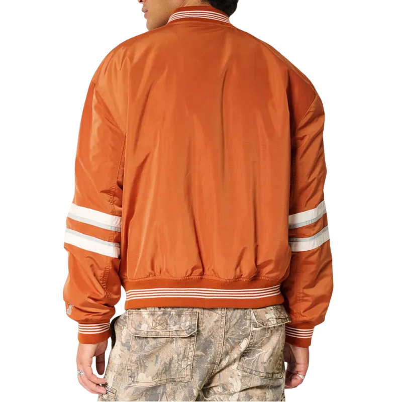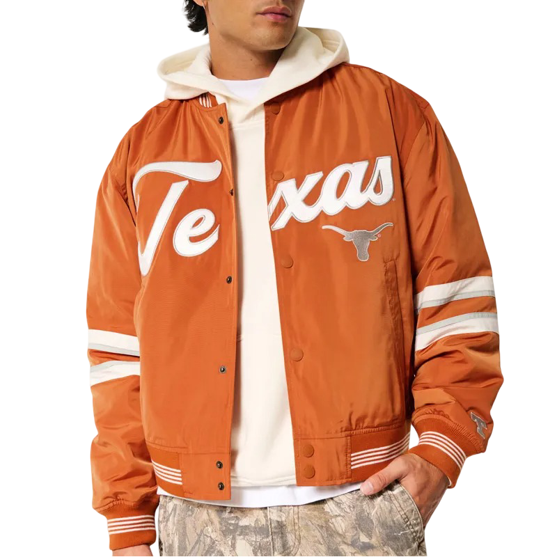 Show your burnt orange pride in bold style with the University of Texas Longhorns Bomber Jacket — a game day essential and streetwear statement all in one. Designed for fans who bleed Texas spirit, this jacket combines classic varsity vibes with a modern bomber silhouette that turns heads on and off campus.