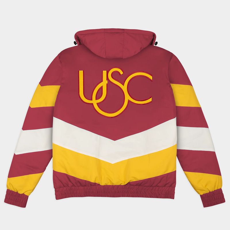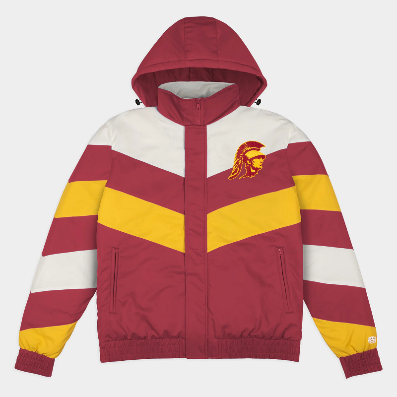 Crafted from premium-quality materials, it features the iconic cardinal and gold colorway, reflecting USC’s legendary team colors. Embroidered USC logos and Gamebreaker detailing provide authentic collegiate flair, while the snap-button front closure, Hooded collar, cuffs, and waistband, and soft inner lining ensure warmth, comfort, and a secure fit.