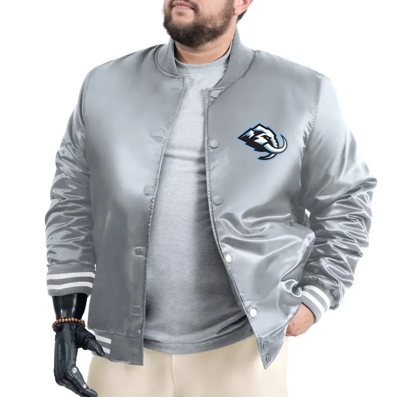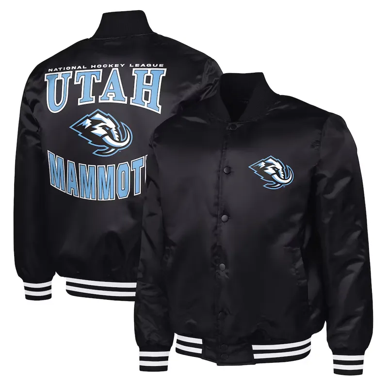 Black/Gray Utah Mammoth Adaptive Bold Logo Varsity Satin Jacket Full-Snap