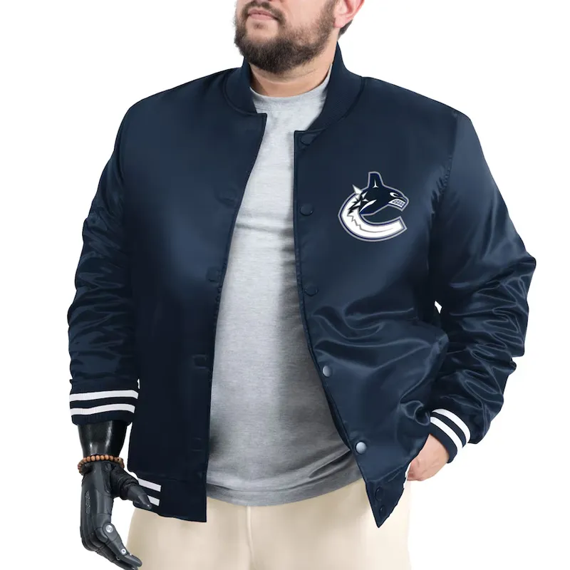 Vancouver Canucks Adaptive Bold Logo Navy Varsity Satin Jacket Full-Snap
