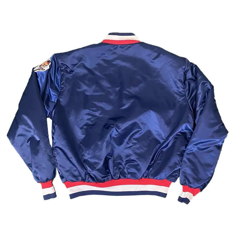 Made from smooth, durable satin, it includes a full-snap front closure for easy wear and ribbed cuffs, collar, and hem for a secure, comfortable fit. Lightweight yet warm, it’s ideal for layering during chilly game nights or casual everyday wear.
