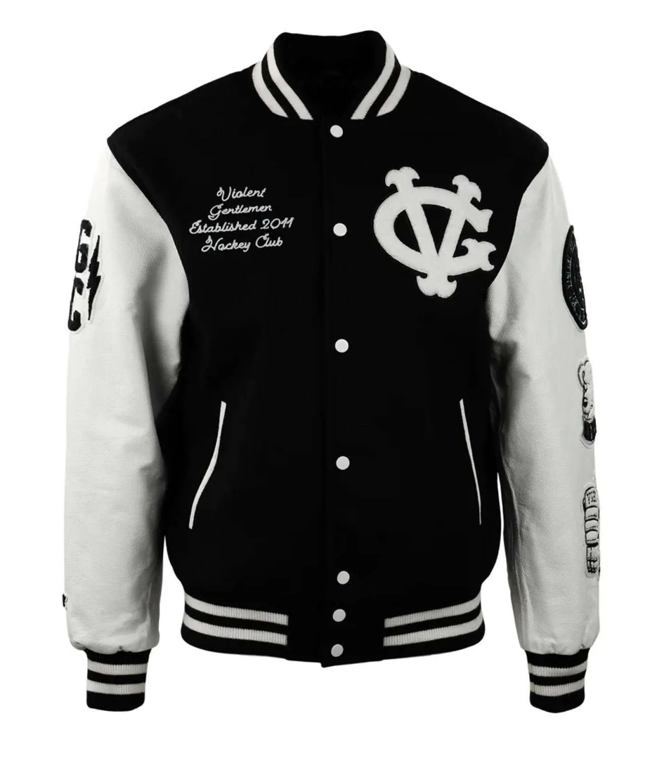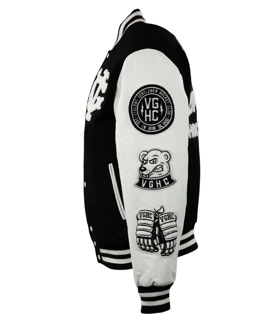 Honor the grit, grind, and tradition of the game with the Violent Gentlemen Hockey Club Varsity Jacket. Built for the fearless, this jacket features a classic varsity silhouette infused with VGHC’s signature edge. With bold branding, high-quality materials, and a fit that’s ready for game day or the streets, it’s a must-have for anyone who lives the hockey lifestyle.