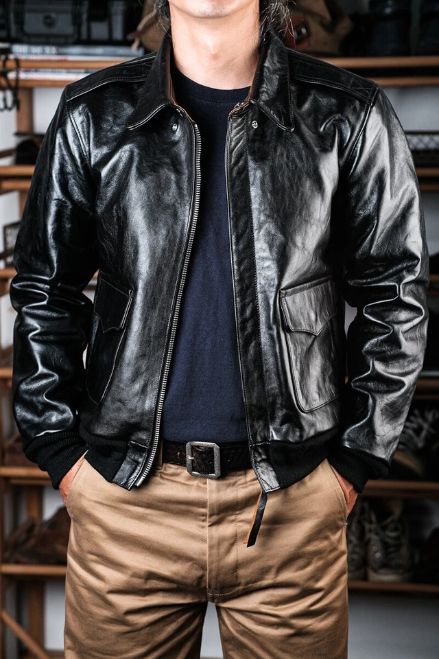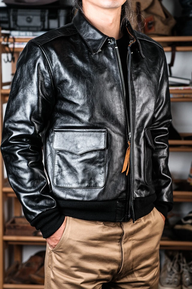 Men’s Horse Hide Motorcycle A2 Flight Oil Wax Leather Jacket