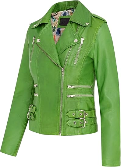 Ladies Retro 100% Nappa Leather Biker Jacket
