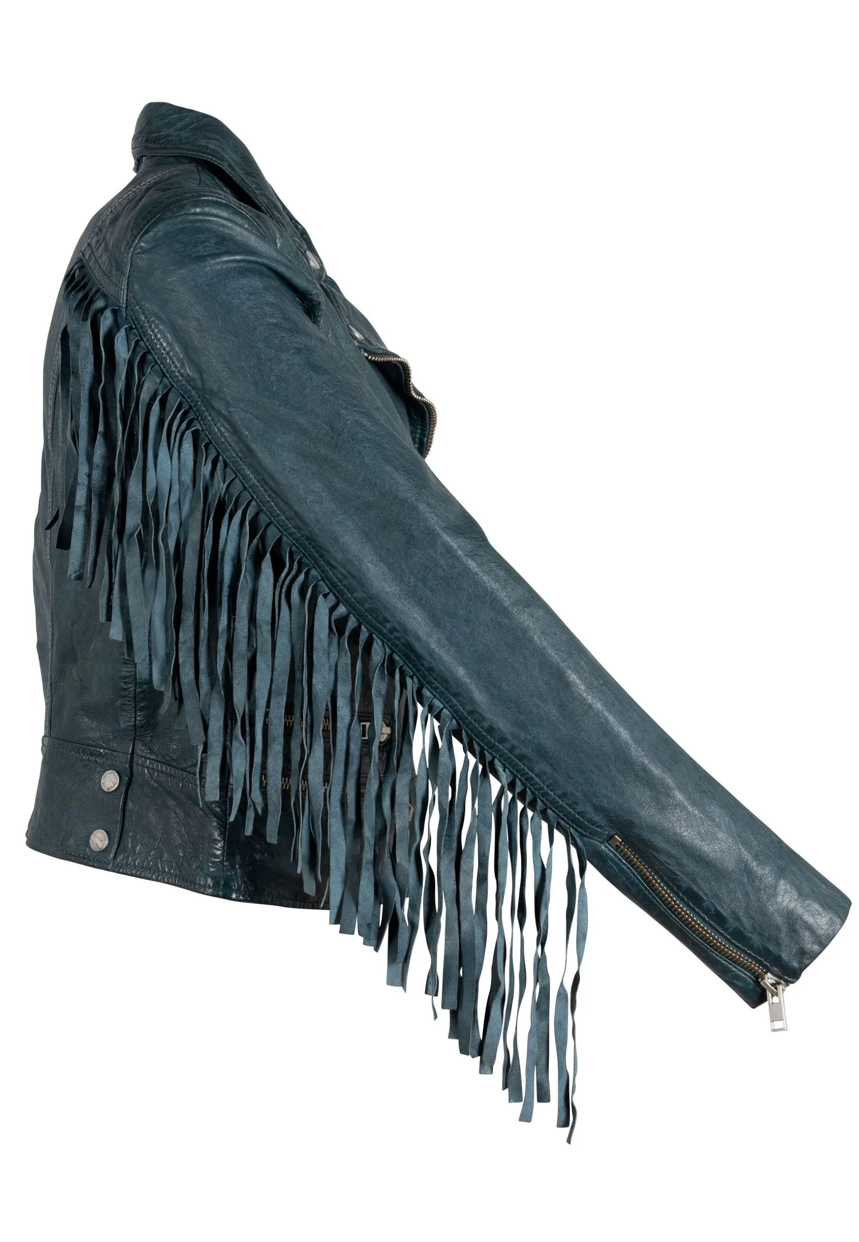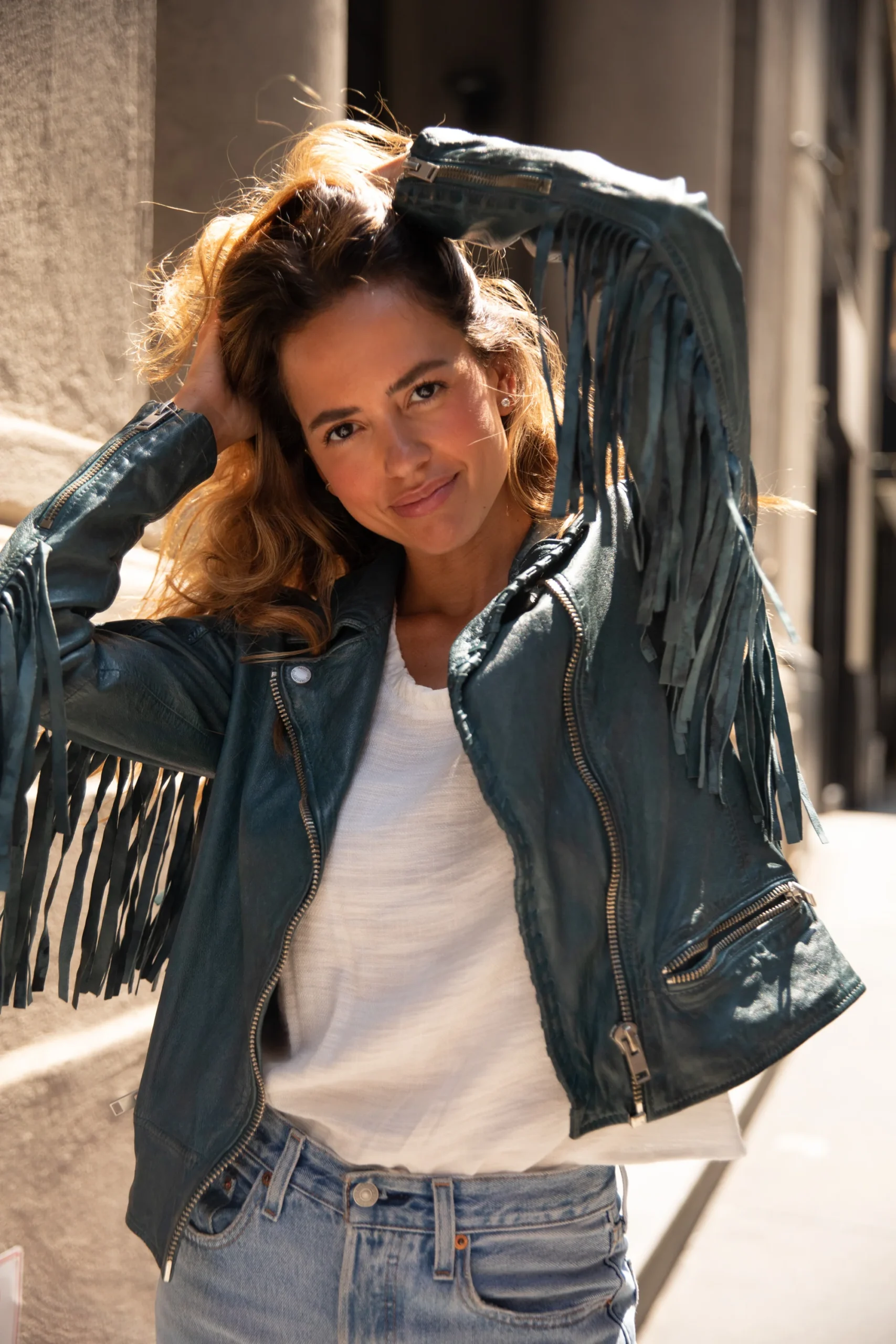 The Zoe RF Suede Leather Teal Jacket is a chic and sophisticated addition to any wardrobe. Crafted from premium suede leather, this jacket offers a soft and velvety texture, ensuring both luxury and comfort. The rich teal color adds a unique and refreshing touch to your look. Designed with a sleek zipper-style closure and front welt pockets, it combines elegance with practicality. The relaxed fit allows for easy layering, while the smooth viscose lining ensures a comfortable wear. With full-length sleeves, this jacket is perfect for both casual outings and stylish evening ensembles.